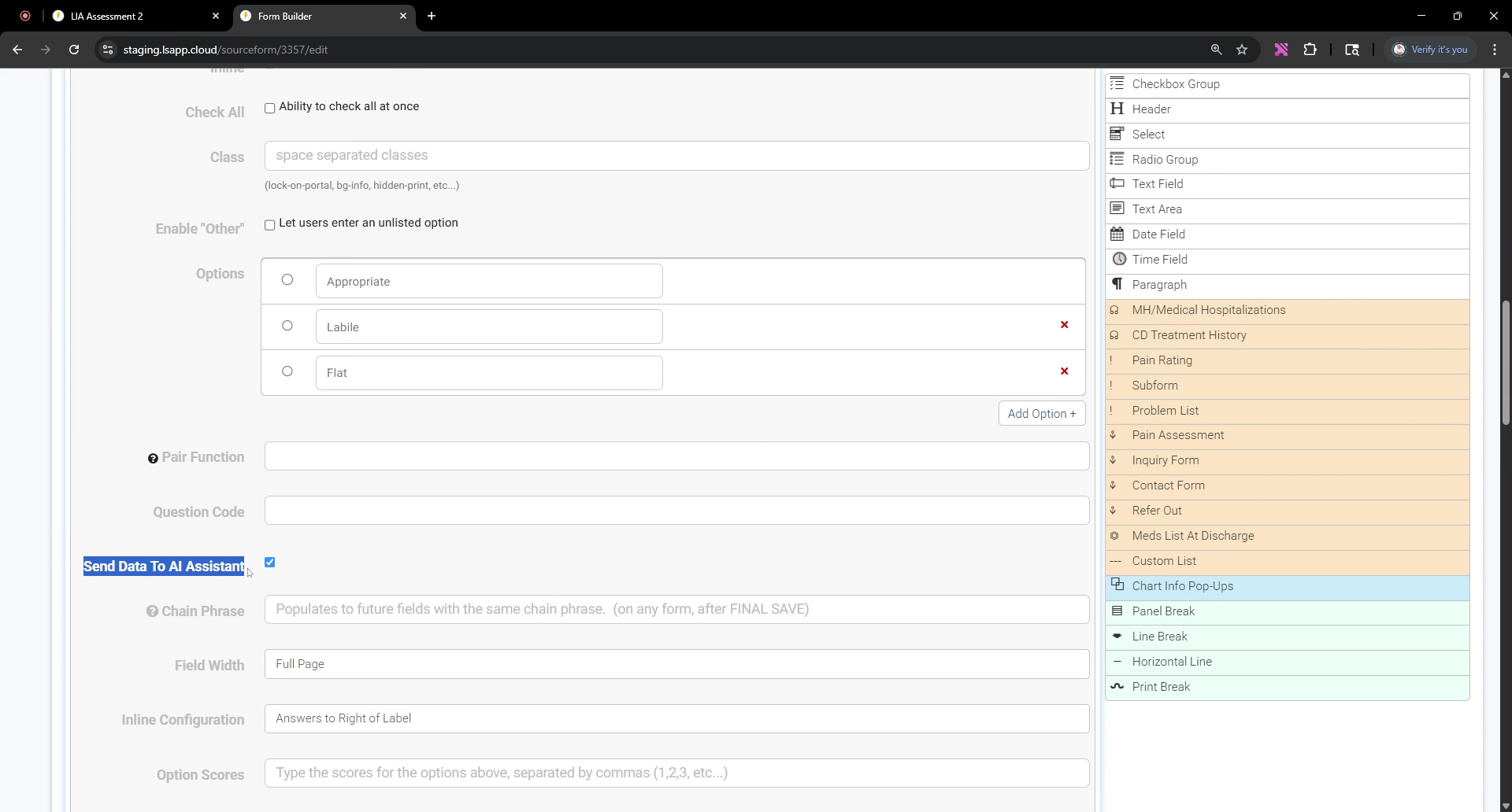 Step 4: Switch to the form builder to set up assessments so they work with LIA.