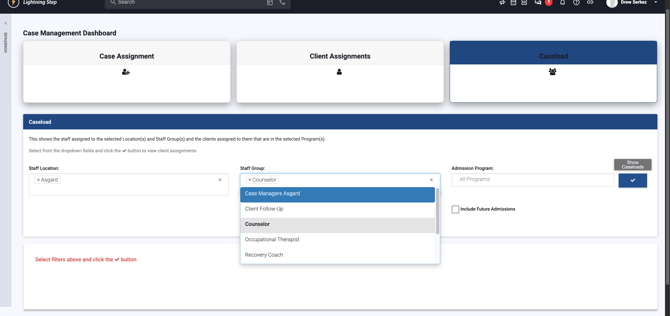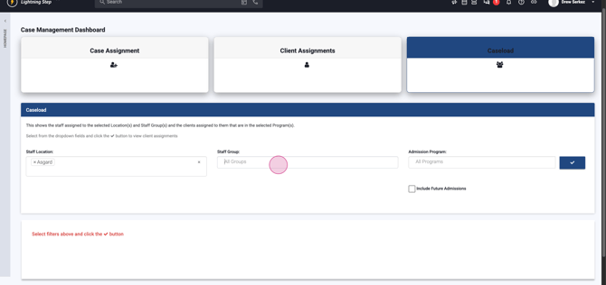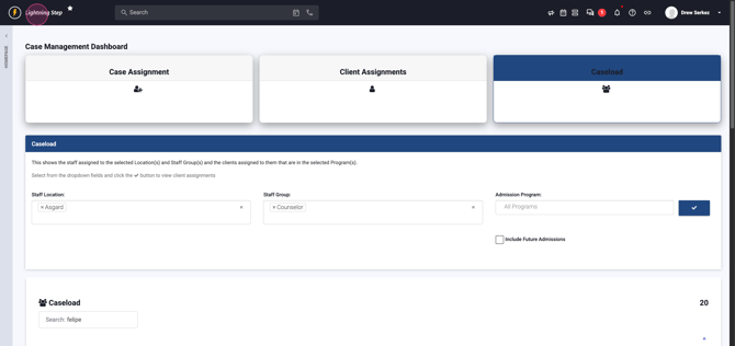 Step 10: Use Caseload to Review Staff Assignments Use the Caseload section to see staff assigned to specific locations and groups along with their current caseloads.