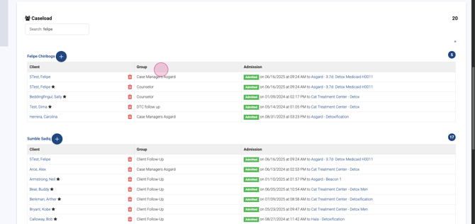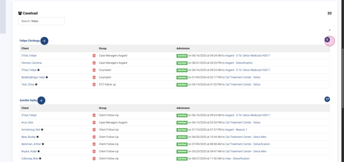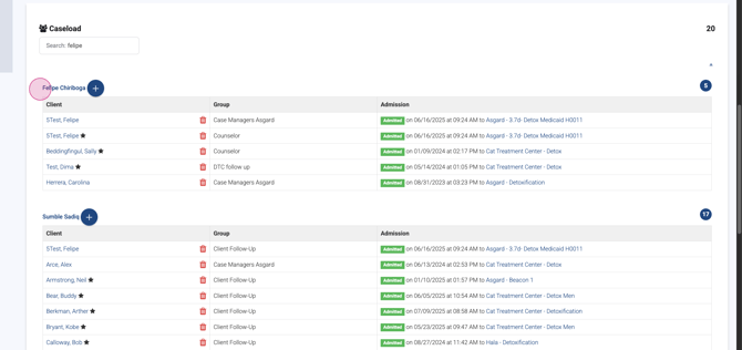 Step 11: View Caseload Breakdown For example, Felipe is assigned to several groups: case managers, counselors, and follow-ups.