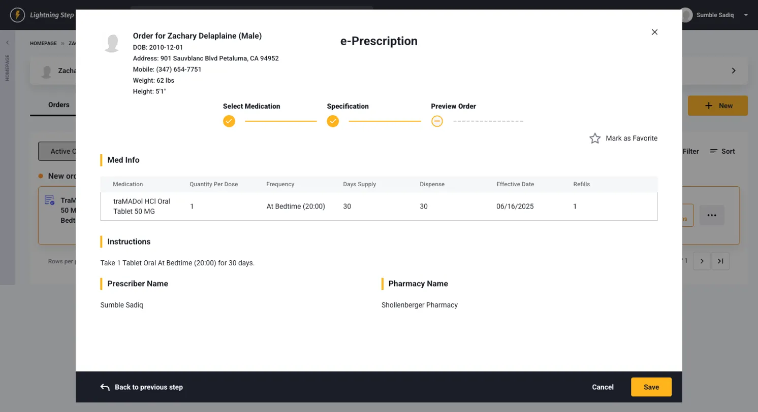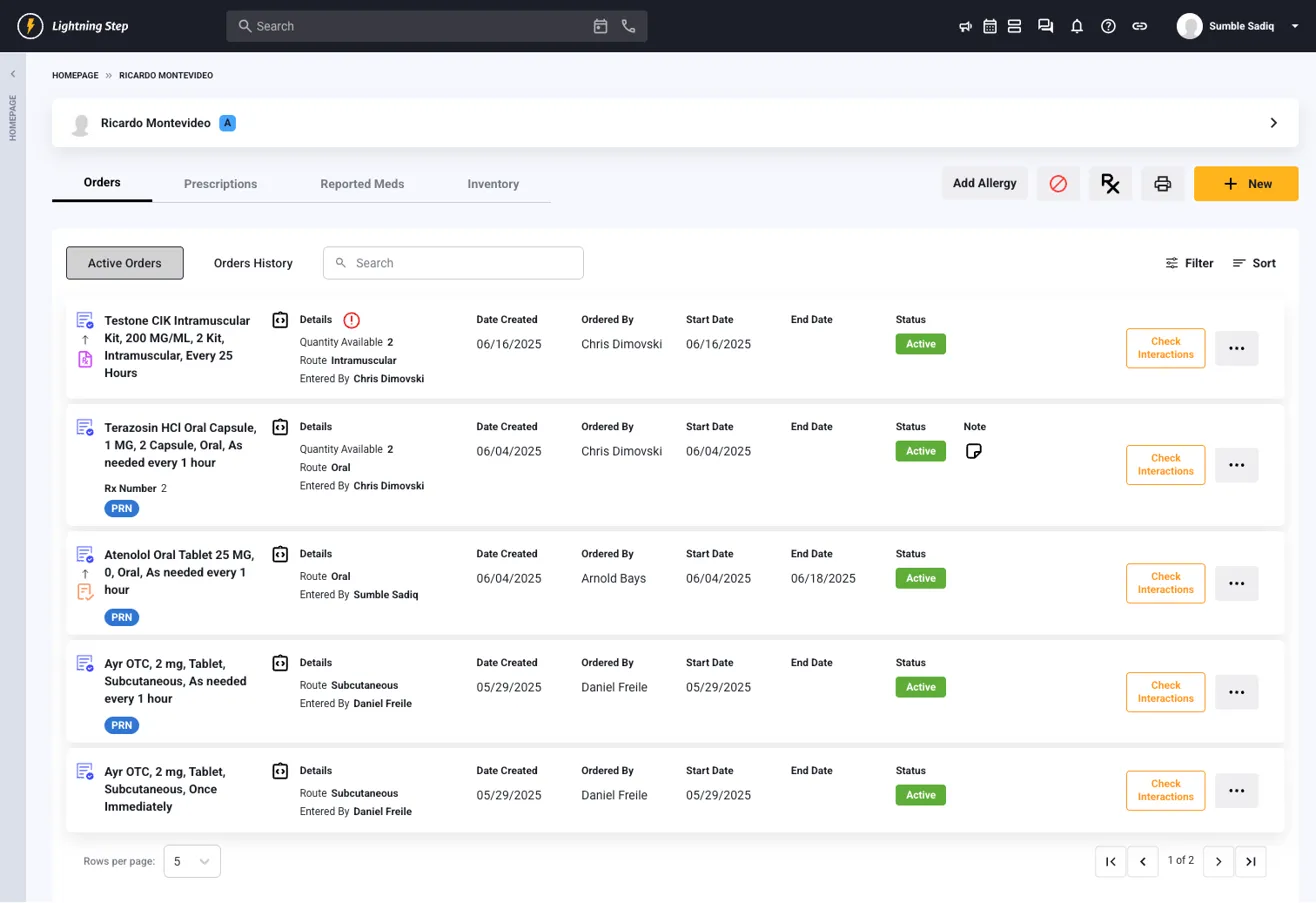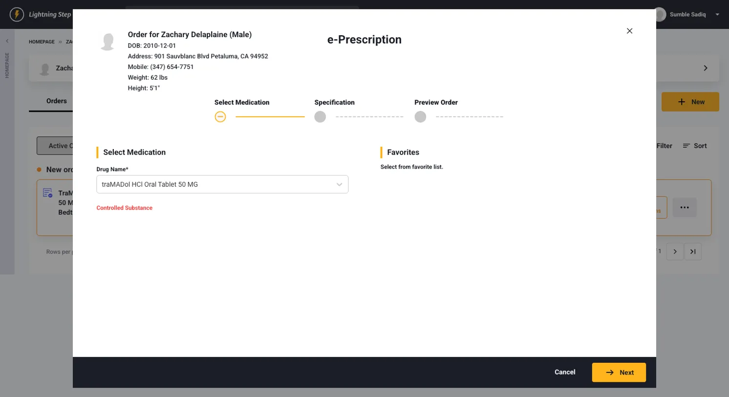 - Controlled Substance Issues: Ensure proper role permissions and TFA setup. Please contact Lightning Step support to verify if your clinician is licensed to send controlled substances.