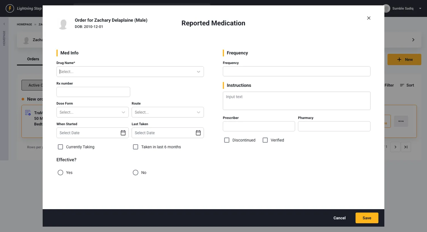 The new medication management system consolidates all medication-related functions into one comprehensive platform. You can now manage Orders, Prescriptions, Reported Medications, and Inventory from a single landing page, providing a complete overview of all client medications.