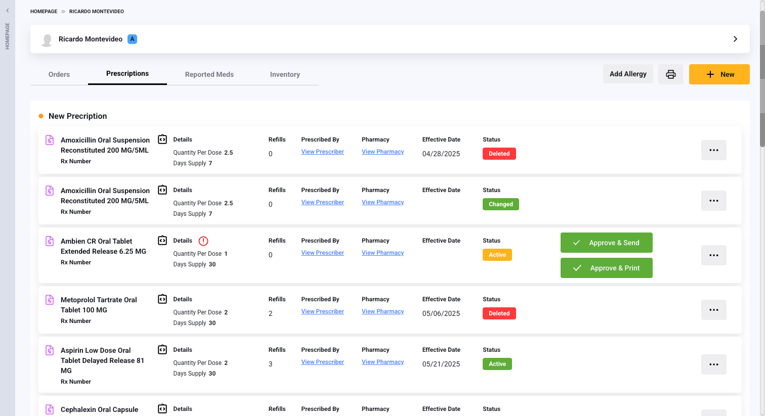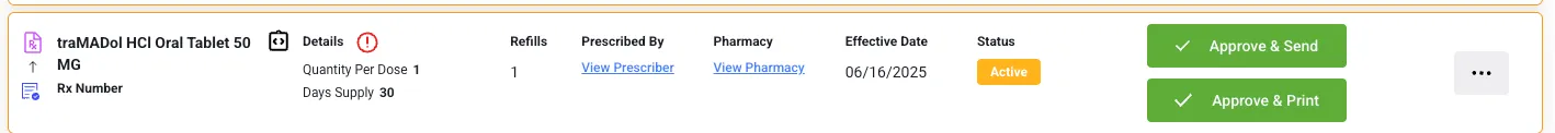 - Status Indicators: Easily identify the current state of the medication/prescription with the color-coded status labels for each medication list type.
