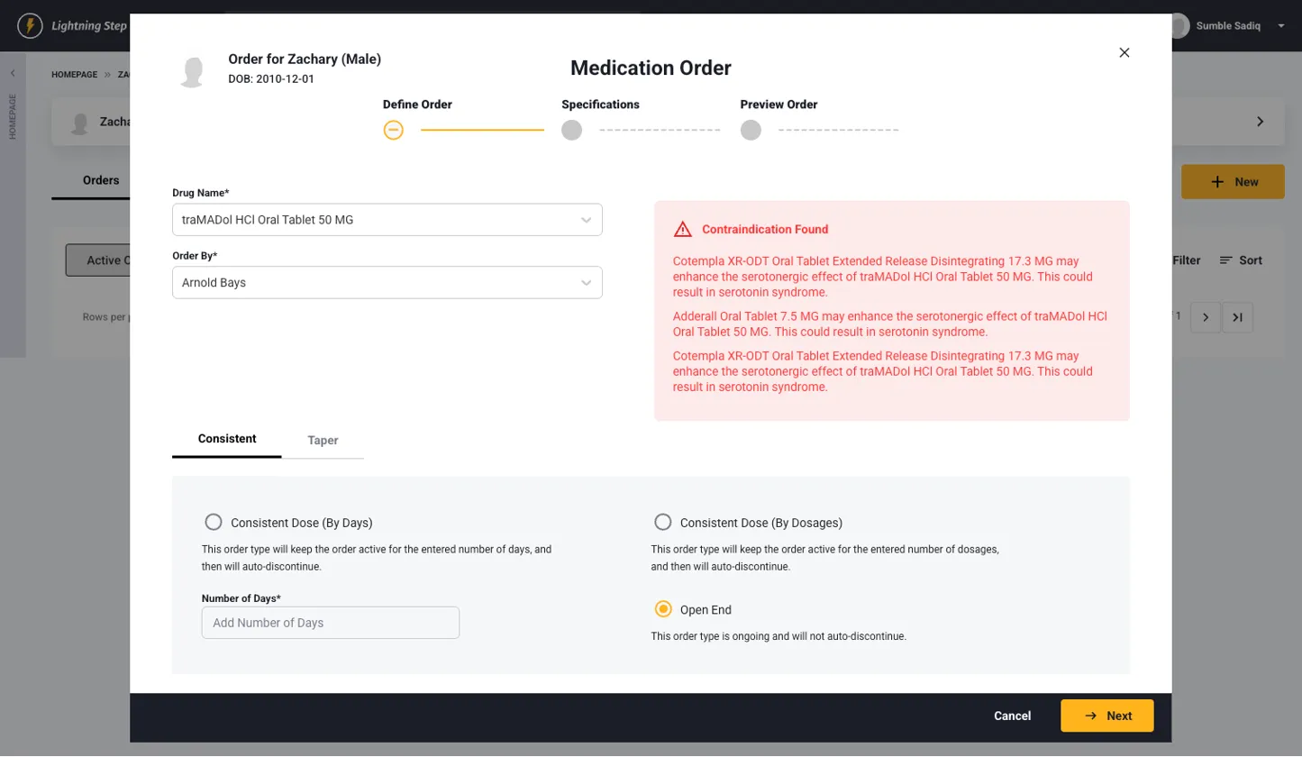 - Real-Time Alerts: Contraindications appear immediately during ordering