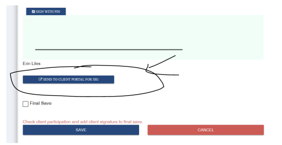 Once the Discharge Plan has been completed, you can also send the Discharge Plan to the Patient Portal for Signature. At the end of the Discharge Plan, there is Send to Client Portal for Sig. This will also be in their Patient Portal for Signature under My Documents once this is sent to the Portal.