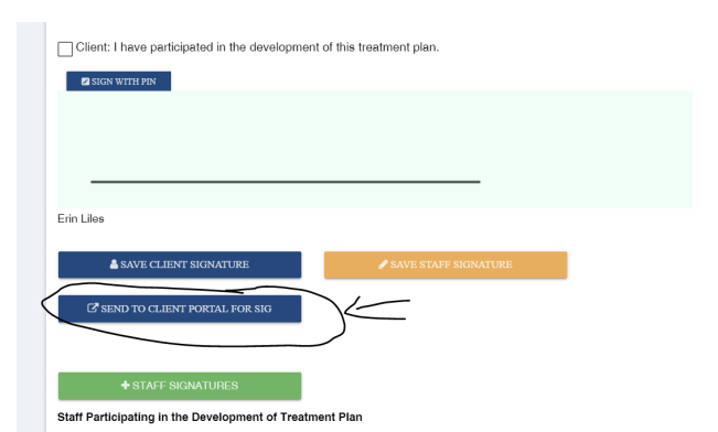 Once a Treatment Plan is completed go to the signatures tab and there will be a button that says send to Client Portal for Sig. This will then show up on the My Documents Tab for the Patient to Sign off on.